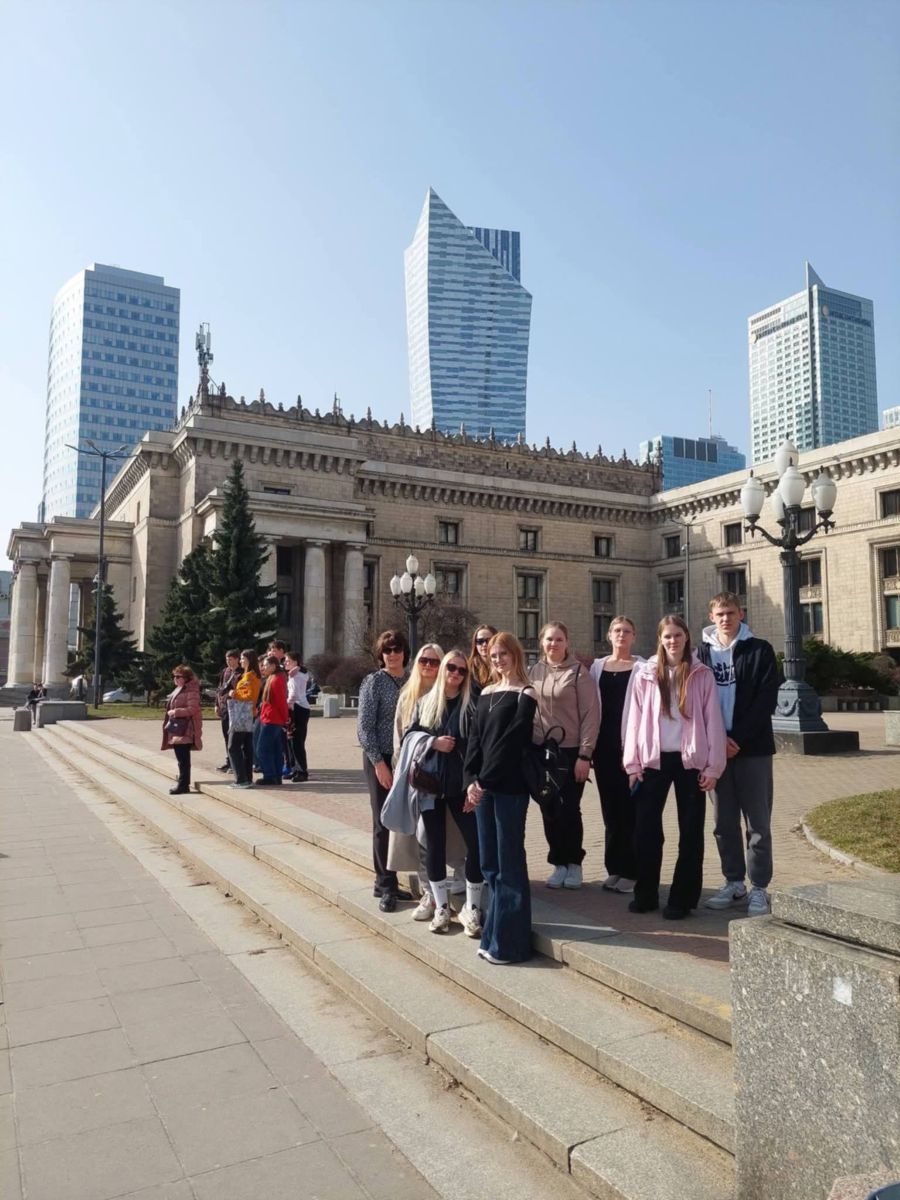 Kelionė prasidėjo labai anksti – į kelią išvykome jau 4 valandą ryto. Pirmasis sustojimas buvo Lenkijos sostinėje Varšuvoje, kur aplankėme žymiausias miesto vietas: Adomo Mickevičiaus paminklą, Amžinąją ugnį, Karališkąją pilį, senamiesčio Turgaus aikštę ir Kultūros bei mokslo rūmus.