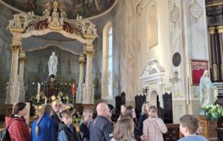 Susipažinome su Krekenavos bazilikos aplinka, kokios relikvijos bazilikoje saugomos, taip pat gavome unikalią galimybę pasivaikščioti prie altoriaus, pamatyti nuostabų vitražą, užlipti į bazilikos varpinę ir paskambinti varpu. Papietavę Krekenavos gimnazijos valgykloje kelionę tęsėme aplankydami Krekenavos apžvalgos bokštą, nuo kurio atsiveria puikūs vaizdai. Džiaugiamės gražia maldinga piligrimine kelione.